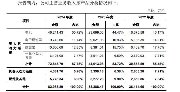 其实,三瑞智能也丝毫不逊色。弗若斯特沙利文数据显示,按2024年7.28亿元销售额计算,该公司在全球民用无人机电动动力系统(不含动力电池)市场以7.1%份额位居第二,仅次于大疆。这一成绩背后,是三瑞智能在细分赛道构筑起独特护城河。